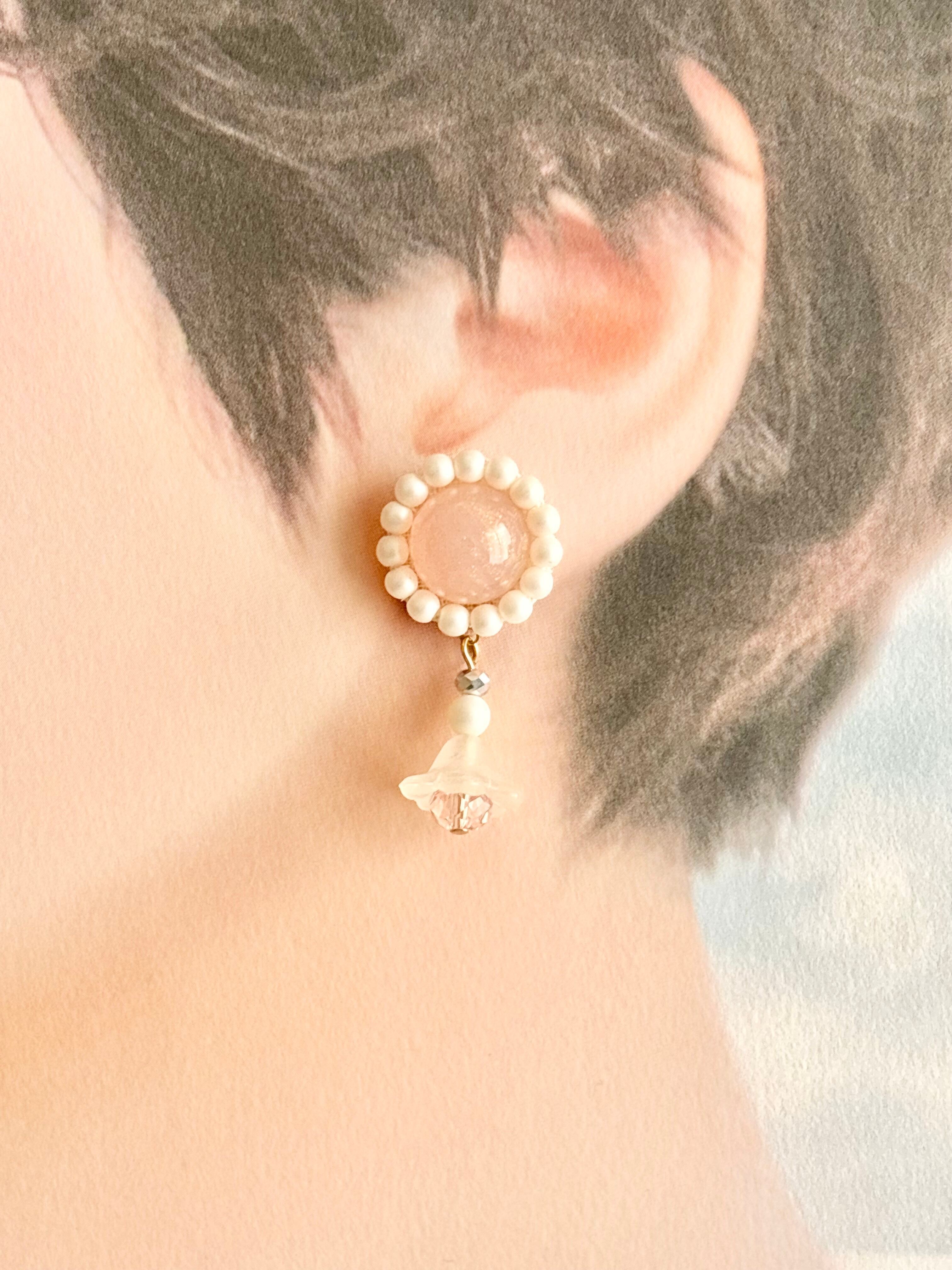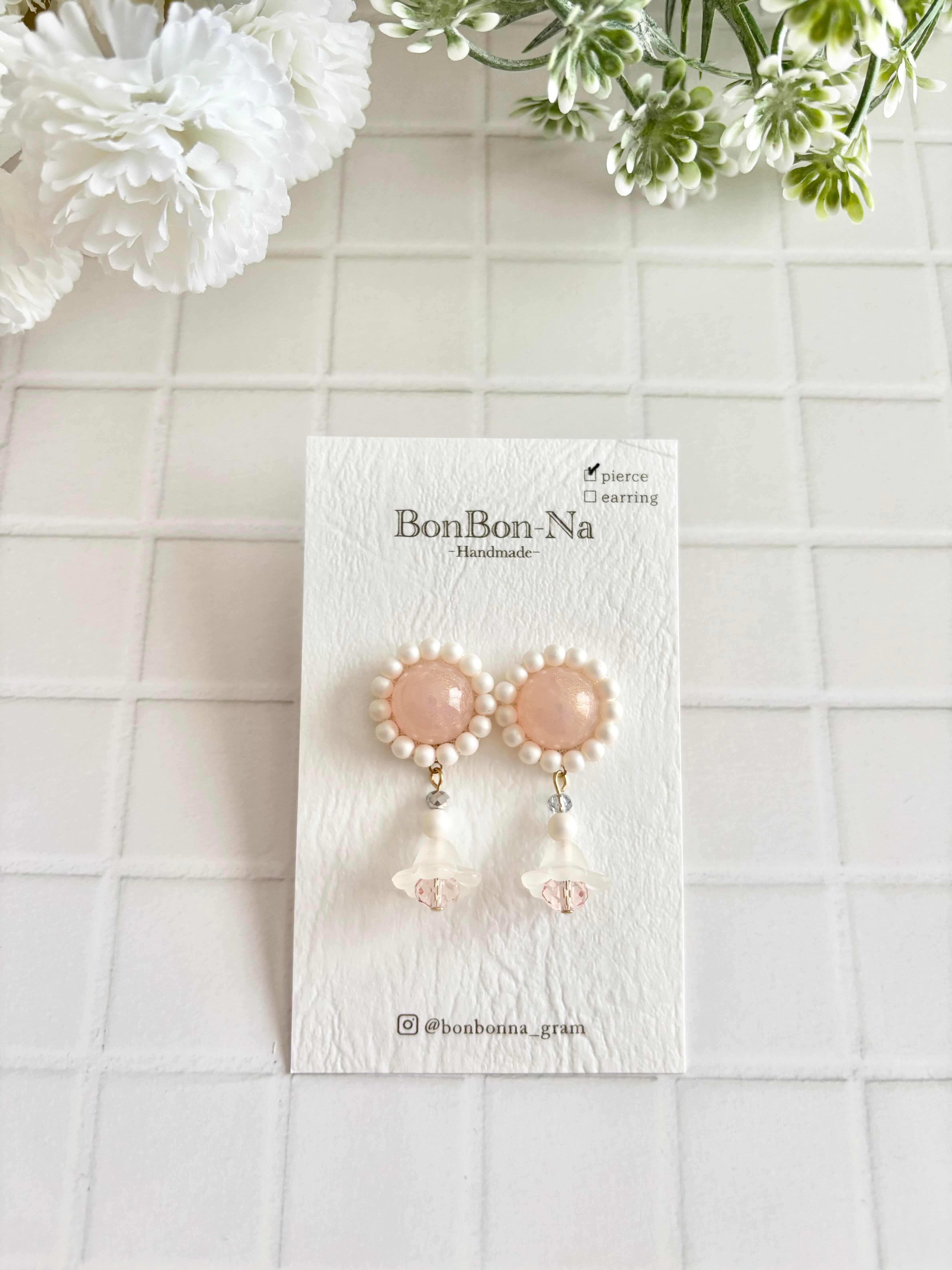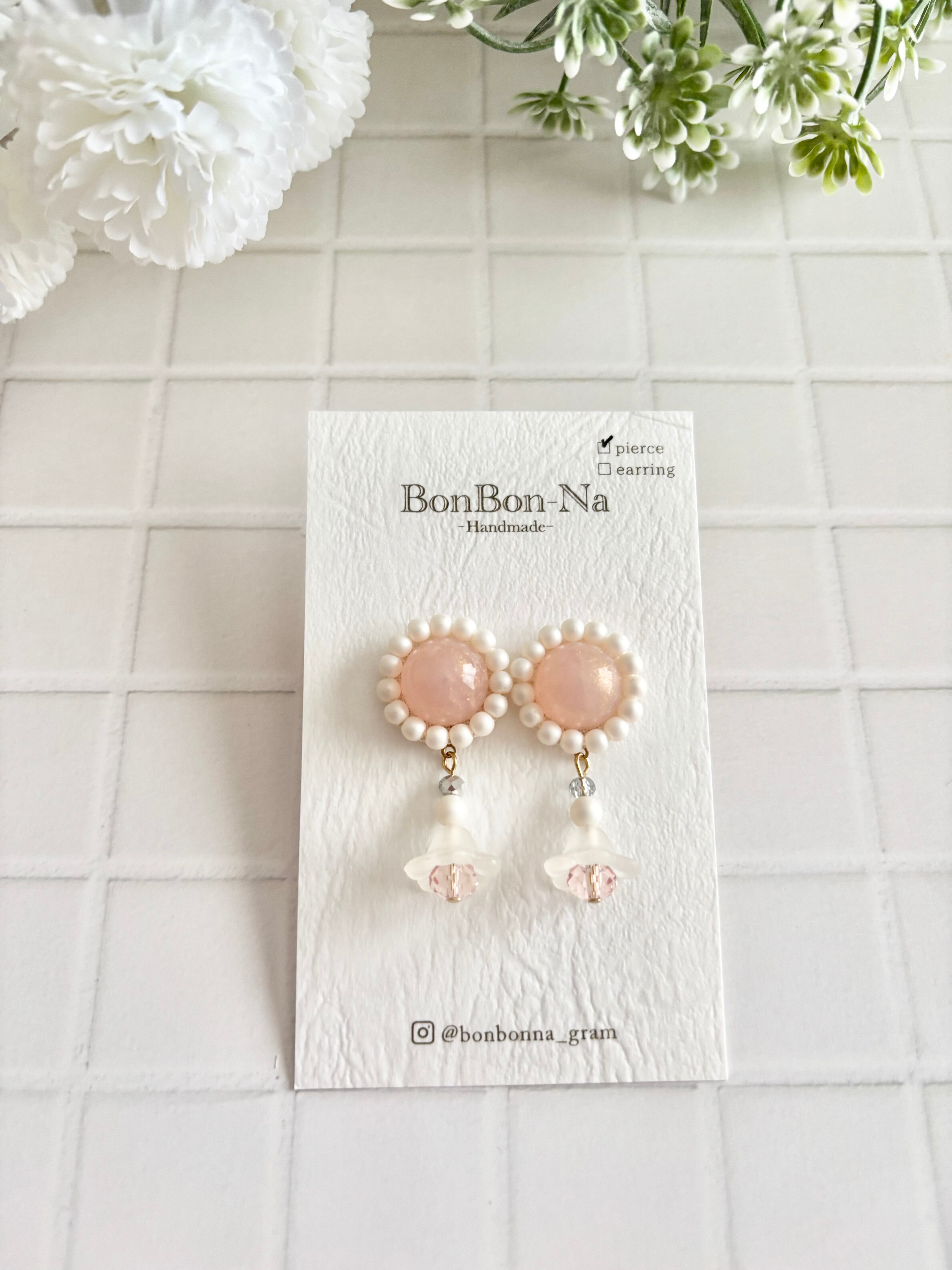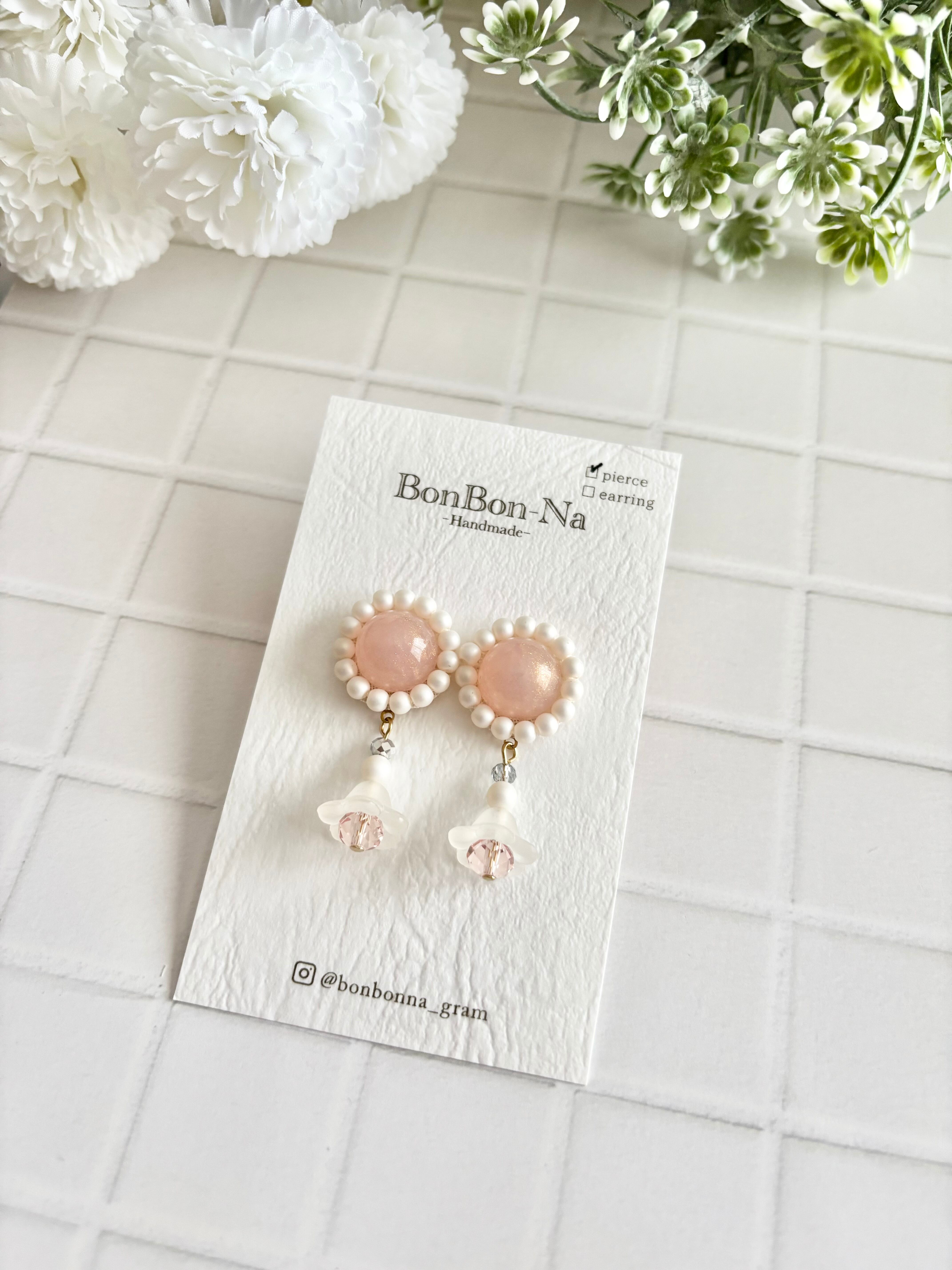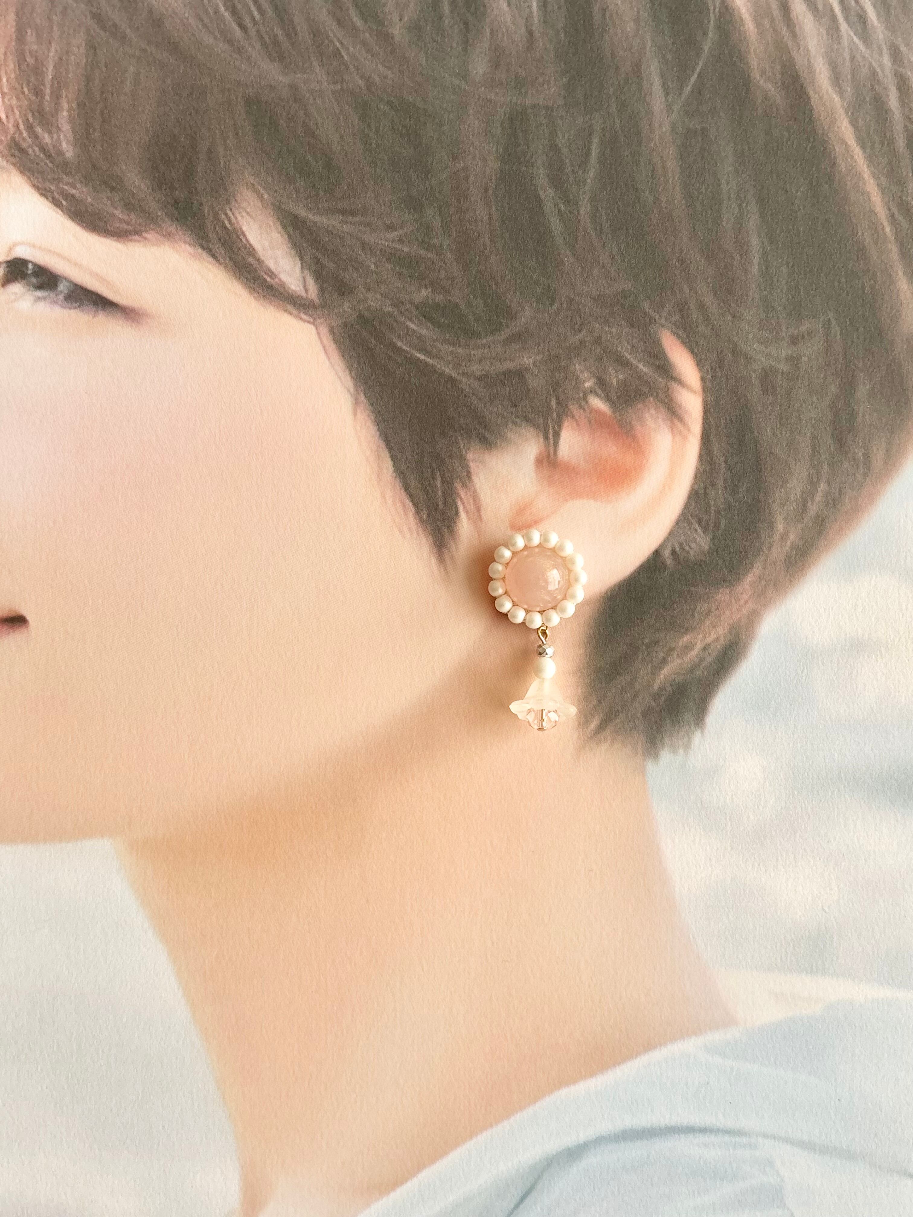 ピンクカボションピアス