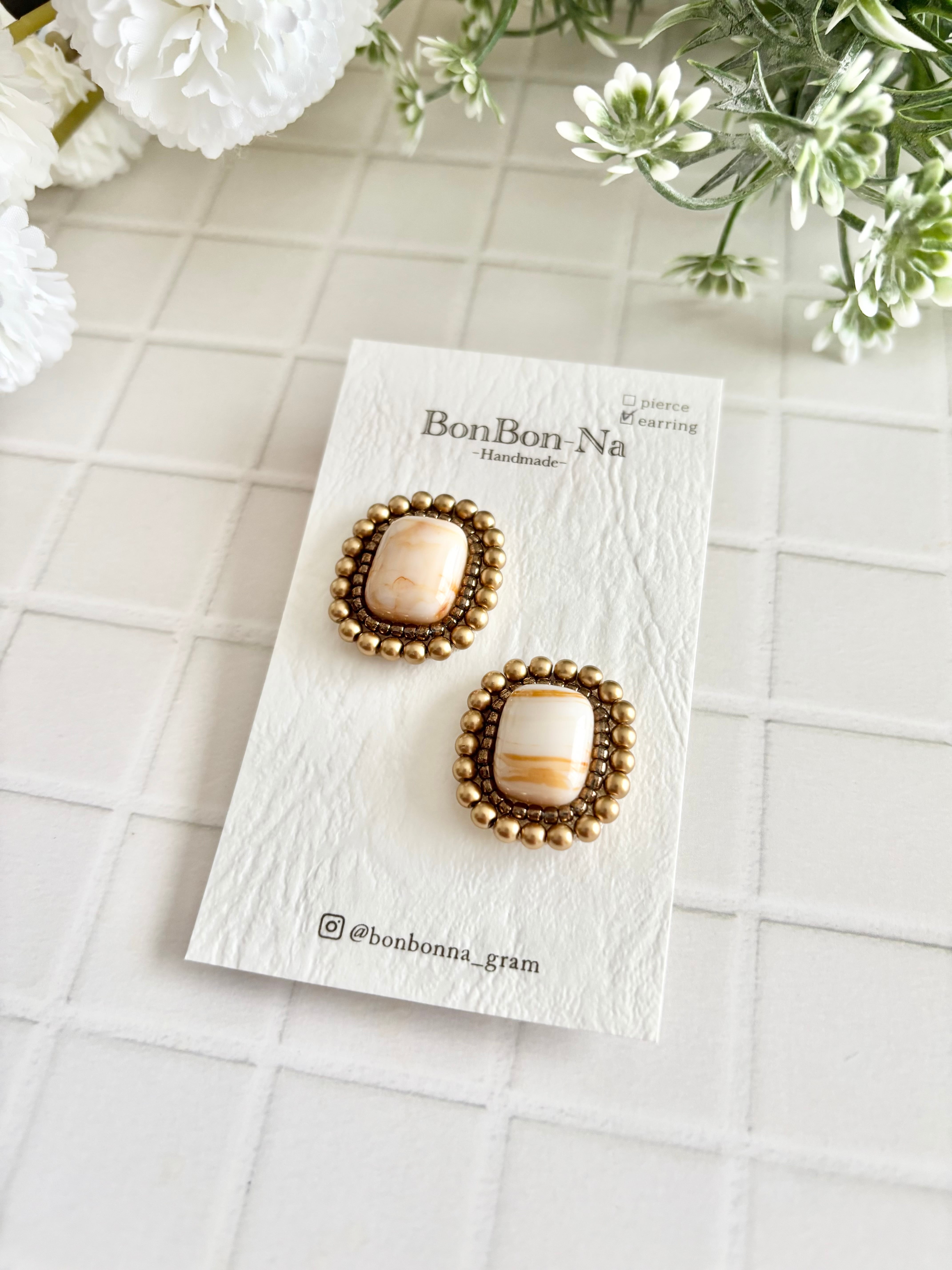アンティーク風のマーブルイヤリングです。