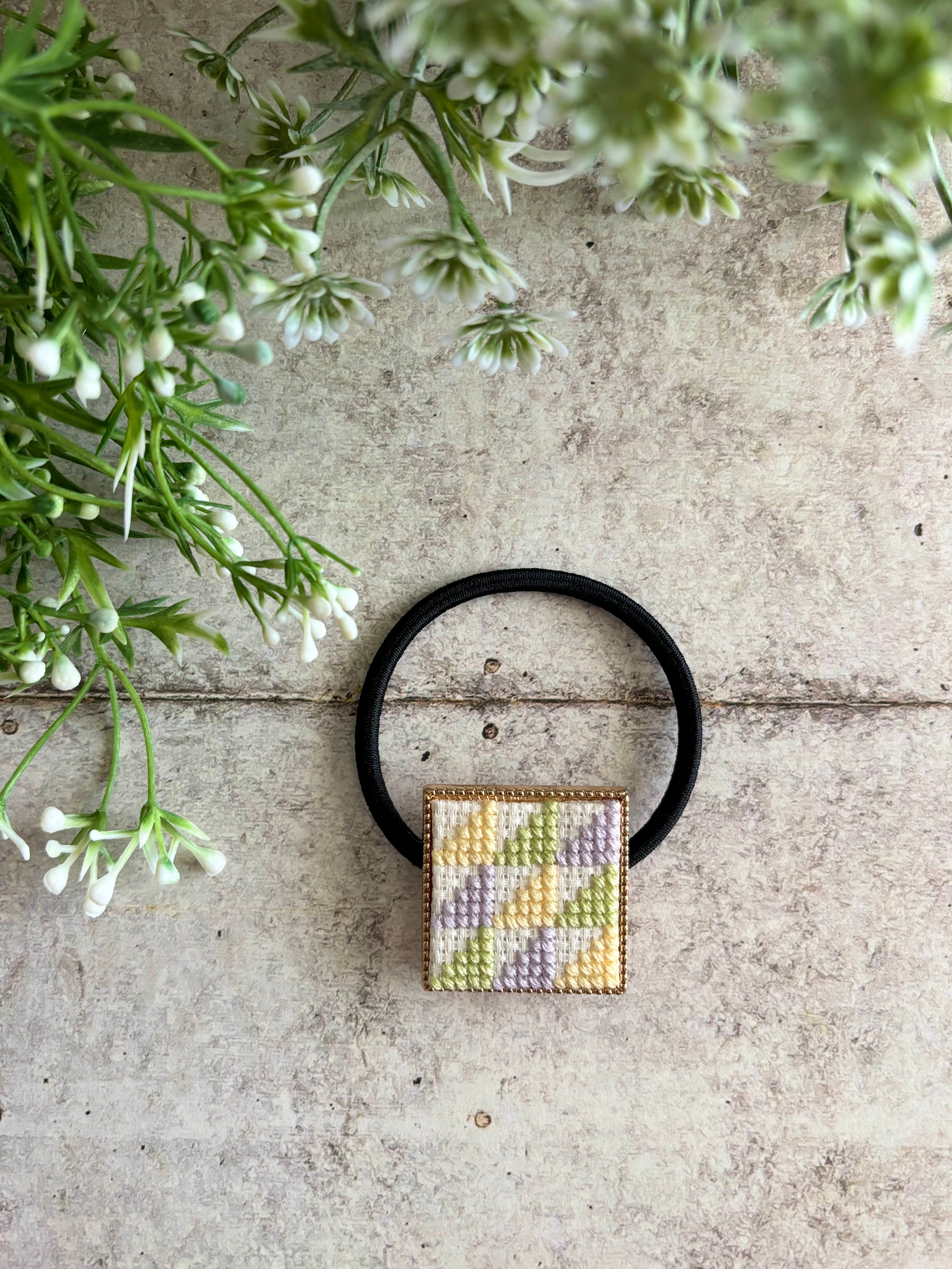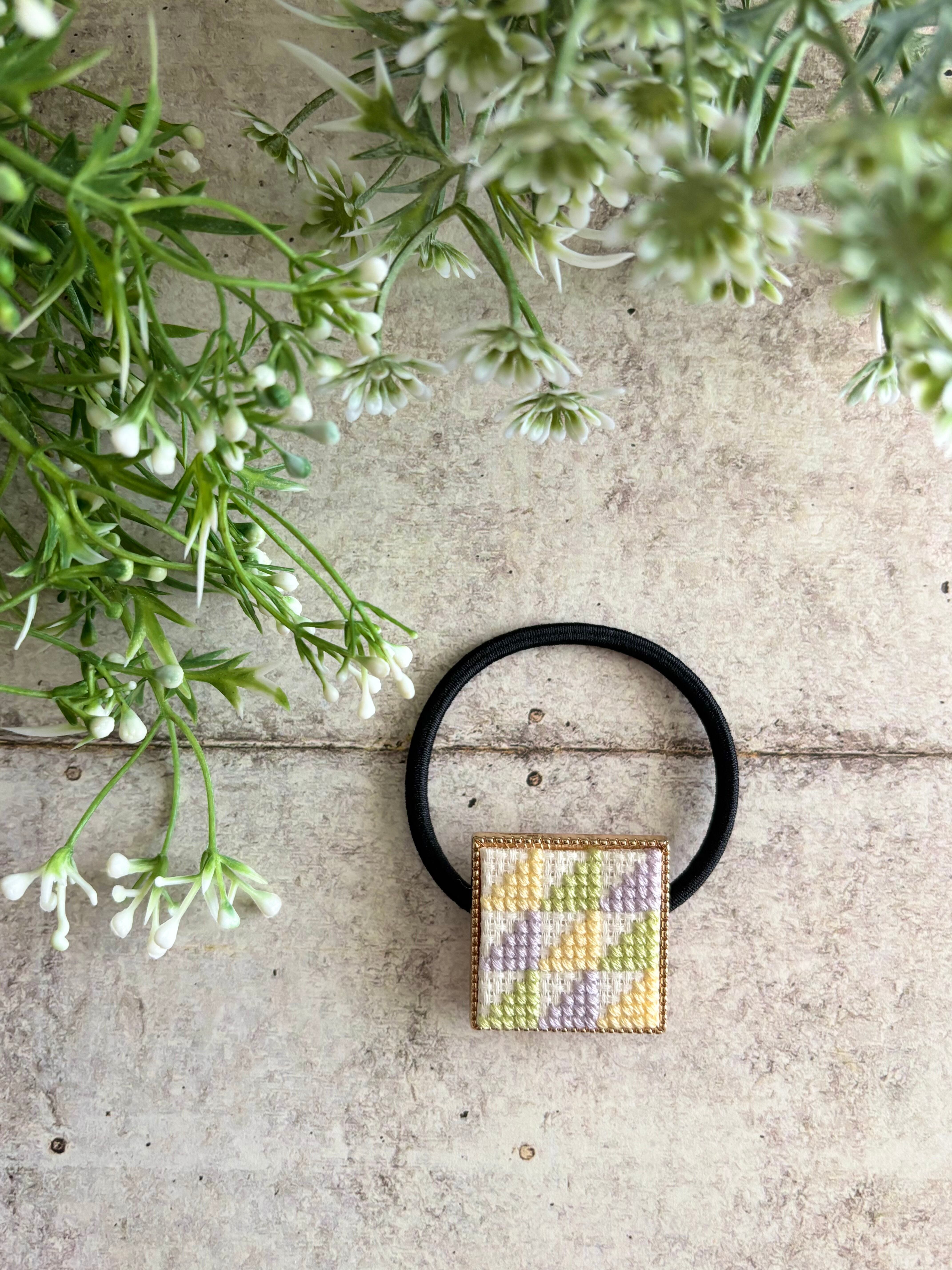 和柄の鱗模様をアレンジしたデザインの刺繍ヘアゴム、ULOCOシリーズのヘアゴムです。