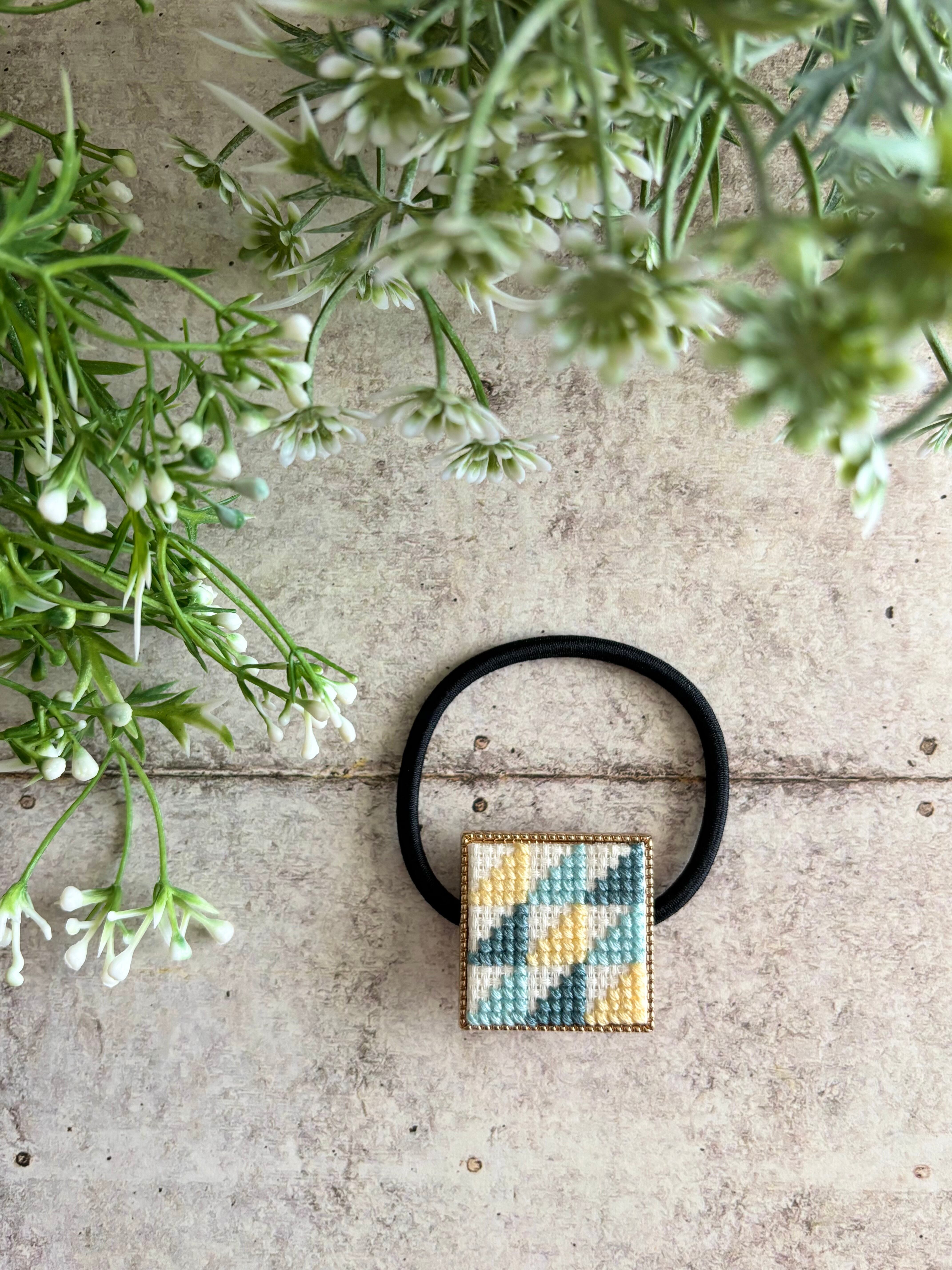 和柄の鱗模様をアレンジしたデザインの刺繍ヘアゴム、ULOCOシリーズのヘアゴムです。