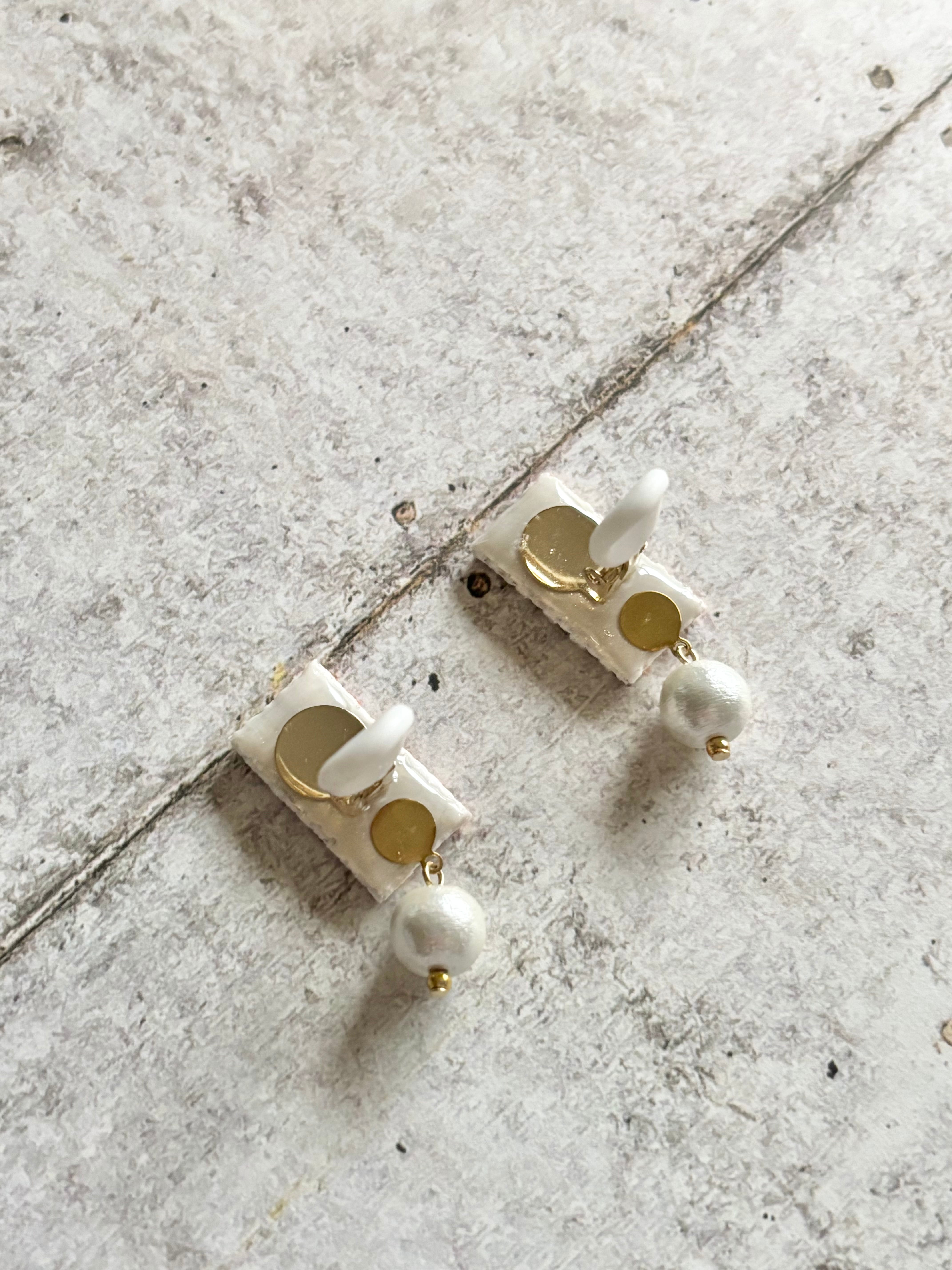 揺れるコットンパールは軽いので、付け心地も良いです。