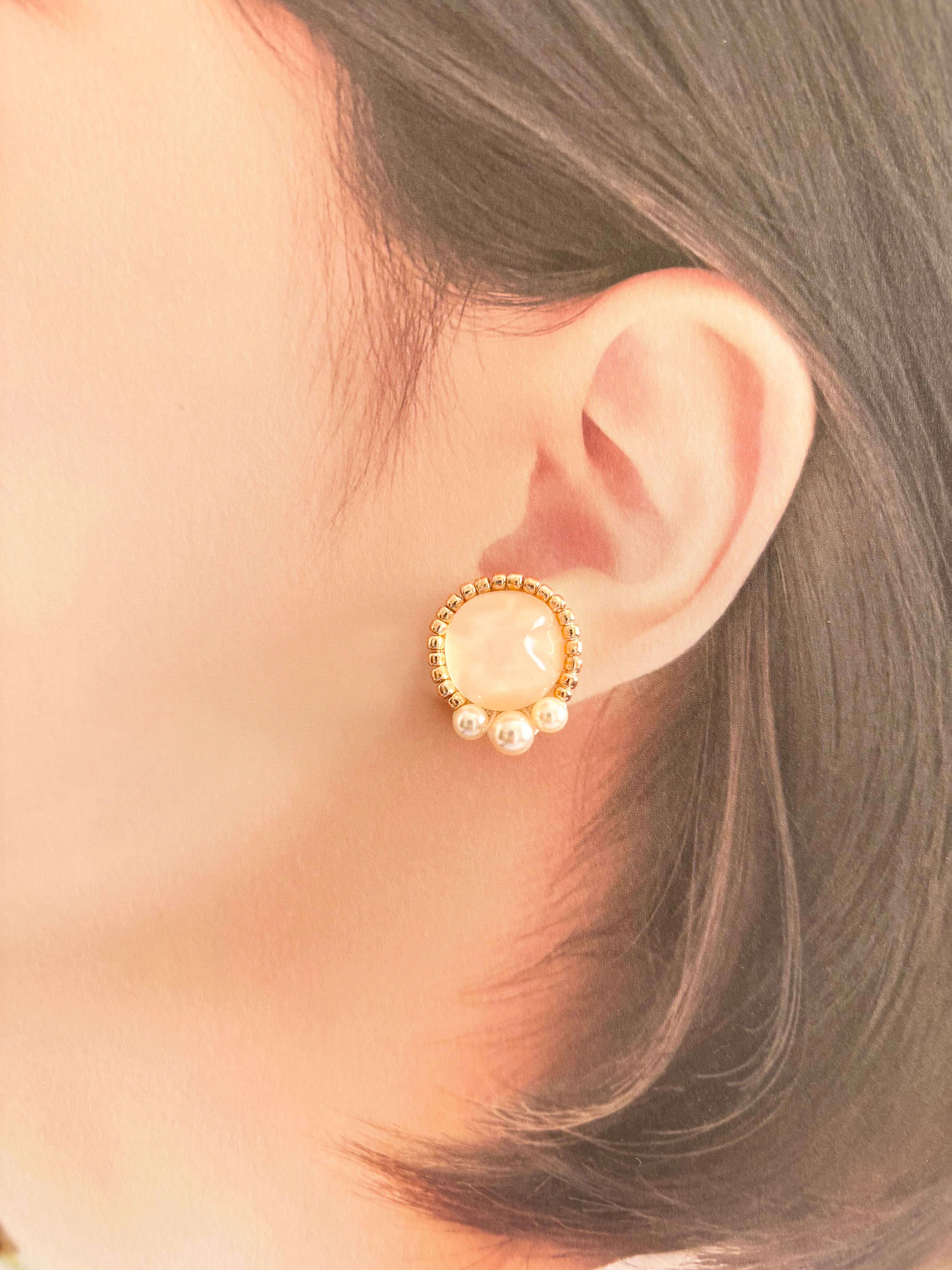 カボションの周りには、ピンクゴールドのビーズ刺繍を施し、つぶつぶのパールビーズで上品さをプラスしました。